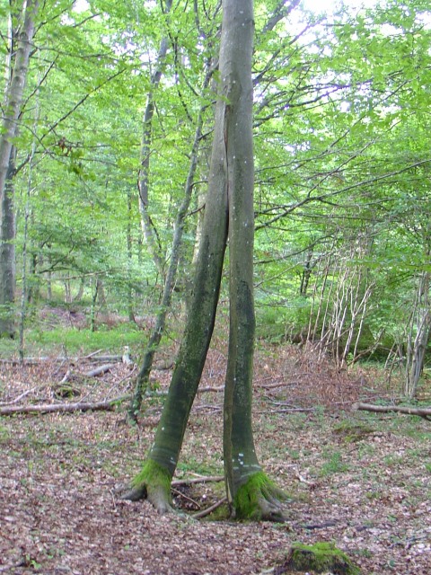 Ursache? Der Stamm teilte sich, weil der Boden unter der Buche hangabwärts geglitten war.