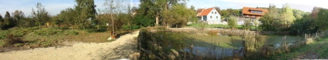 2009 - Rundblick ehemaliges Schwimmbad (links) und heutiges Feuchtbiotop (rechts) (zum Vergrößern aufs Bild klicken) |