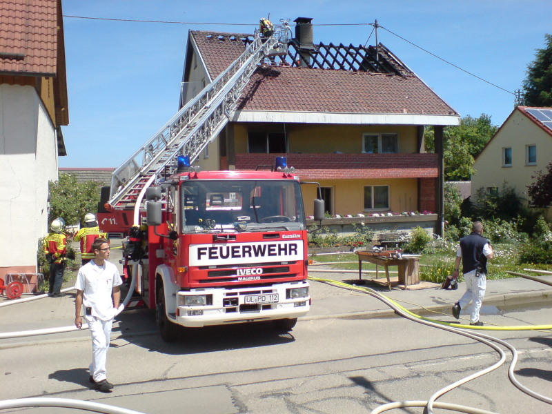 30. Mai 2011 Gebäudebrand in Dächingen Am Montag 30. Mai 2011 wurden um 11.06 Uhr die Feuerwehren der Ehinger Alb (Tagschleife) und die Stützpunktwehr Ehingen zu einem Zimmerbrand in die Ziegelstraße nach Dächingen gerufen. Aus Altsteußlingen waren 5 Kameraden der Tagschleife im Einsatz.