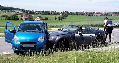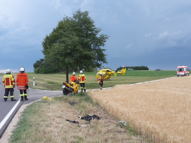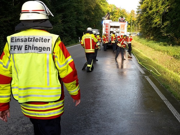 6. Juli 2017 Technische Hilfeleistung nach Verkehrsunfall 15.51 Uhr: Auf der B465 zwischen Altsteußlingen und der Einfahrt nach Dächingen überschlug sich ein Motorrad nach einem Überholvorgang. Fahrer und Beifahrer wurden teilweise schwer verletzt. |