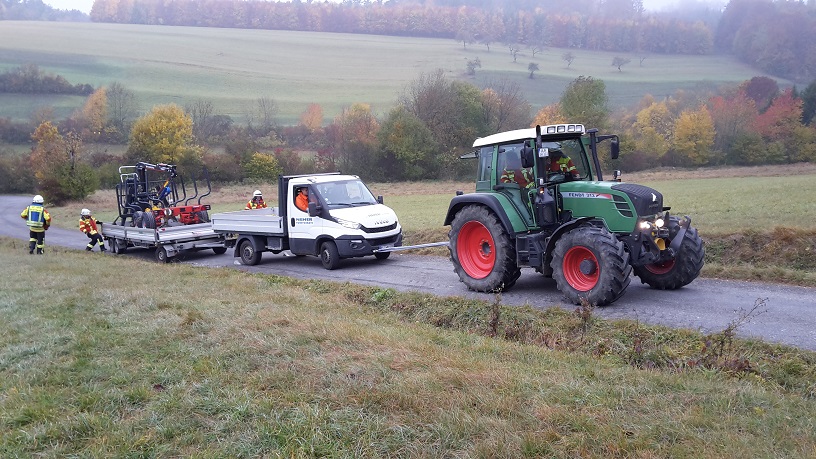 28. Oktober 2021 Technische Hilfeleistung 9.11 Uhr: Alarmierung zu einer technischen Hilfeleistung. Auf dem Verbindungsweg von Kirchen nach Altsteußlingen hatte eine IVECO Daily Pritsche mit Anhänger Probleme an der Steigung. Das Fahrzeug konnte weder vor- noch zurückfahren. Mit Hilfe eines Schleppers wurde das Fahrzeug die Steigung hochgezogen. |