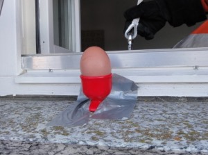 (zugefrorener Teich) abgestelltes Ei muss auf der Fensterbank