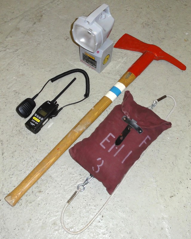 Feuerwehrhaltegurt Feuerwehraxt / Feuerwehrbeil Feuerwehrleine Handscheinwerfer Atemschutzgerät (mit Atemschutzmaske) Flammschutzhaube Warnweste Kennzeichnungsweste Tauchausrüstung Wathose Handsprechfunkgerät Gehörschutz
